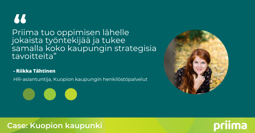 Read more about why Kuopio chose Priima, how the learning environment has been implemented and what concrete benefits it has brought to the whole organisation.